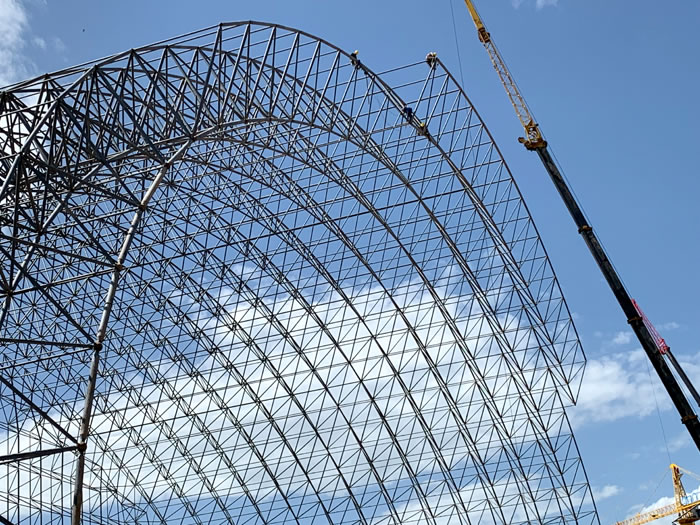 (2)网架加工前应对现场尺寸进行复测,确认无误后方可进行加工、安装;网架制作、运输、安装应遵守《空间网格结构技术规程》JGJ7-2010、《钢网架苏州螺栓球节点》JG/T 10-2009、《钢网架苏州螺栓球节点用高强度螺栓》 GB/T 16939-2016、《苏州钢结构苏州工程苏州施工规范》 GB50755-2012、《苏州钢结构苏州工程施工质量验收标准》 GB50205-2020。
